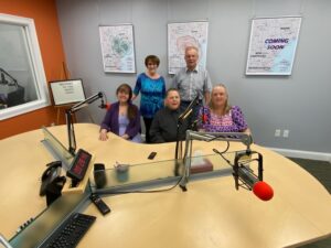 (pictured above, at left Charlene Staples, Mike Biasin, and Mike’s fiancé Laurie Ford at right. Taken at the Word Radio Studios in Rochester NH.)